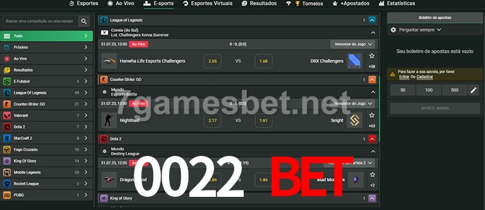 O 0022 Bet oferece uma grande seleção de opções de apostas em e-sports com probabilidades competitivas